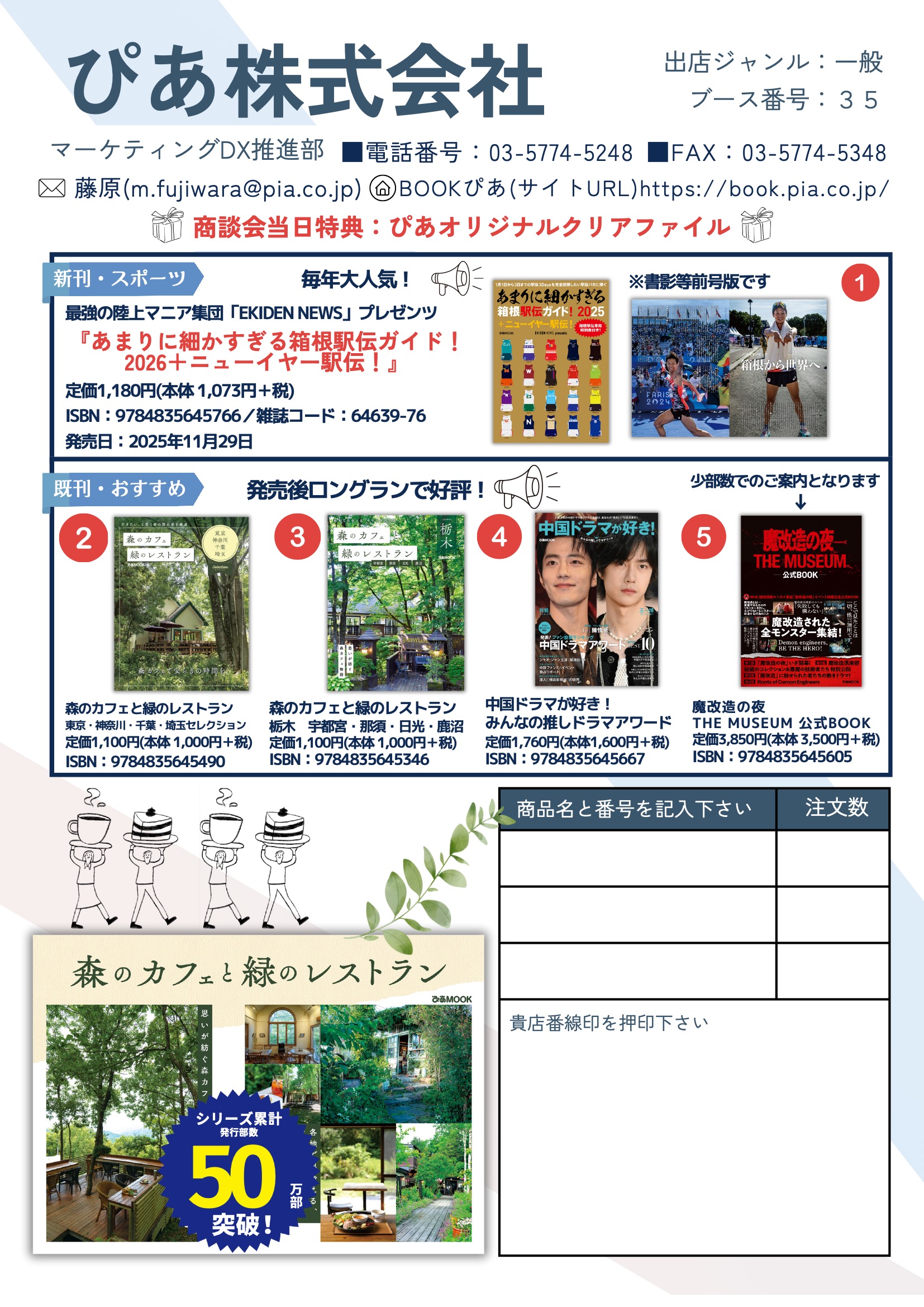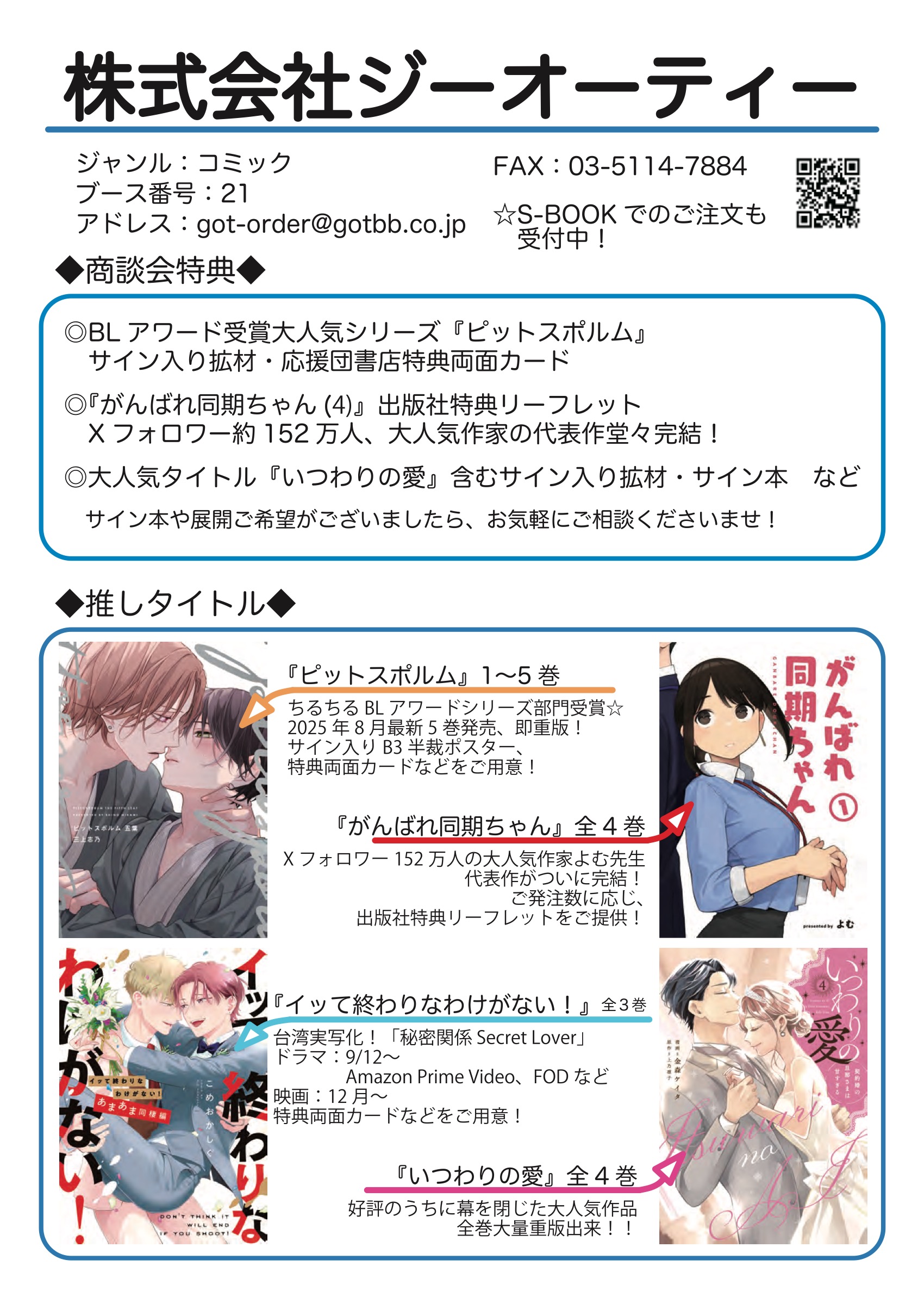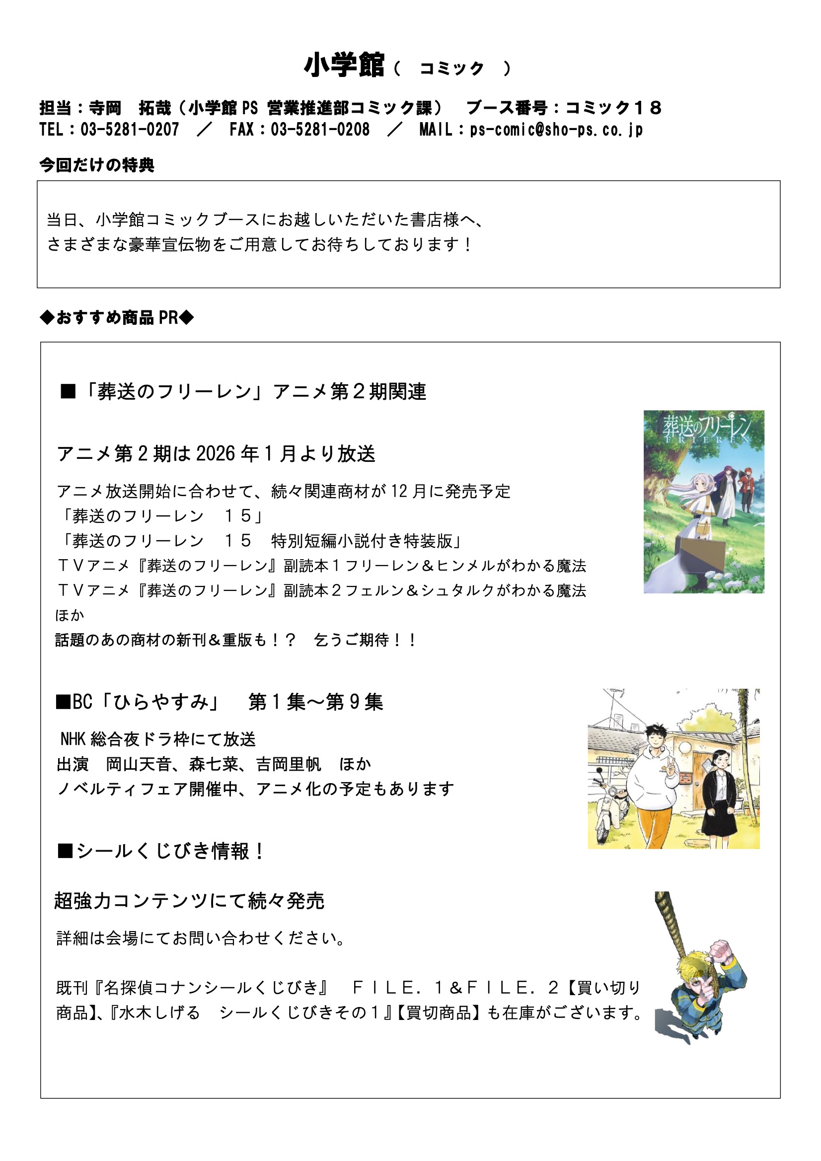 | 出版社名 | ふりがな | ジャンル - ブース番号 |