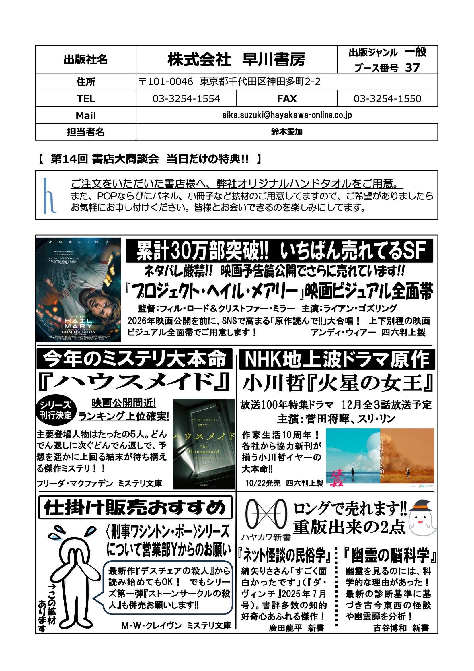 | 早川書房 | はやかわしょぼう | 一般 - 37 |